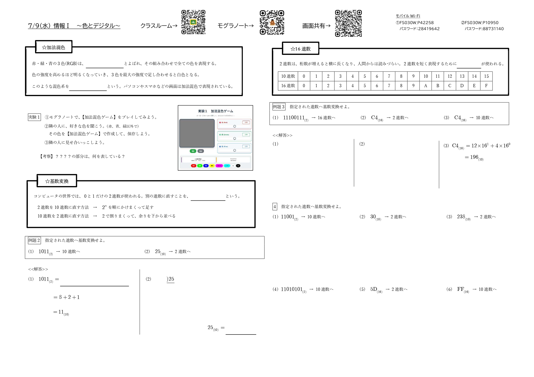 実験1 加法混色ゲーム